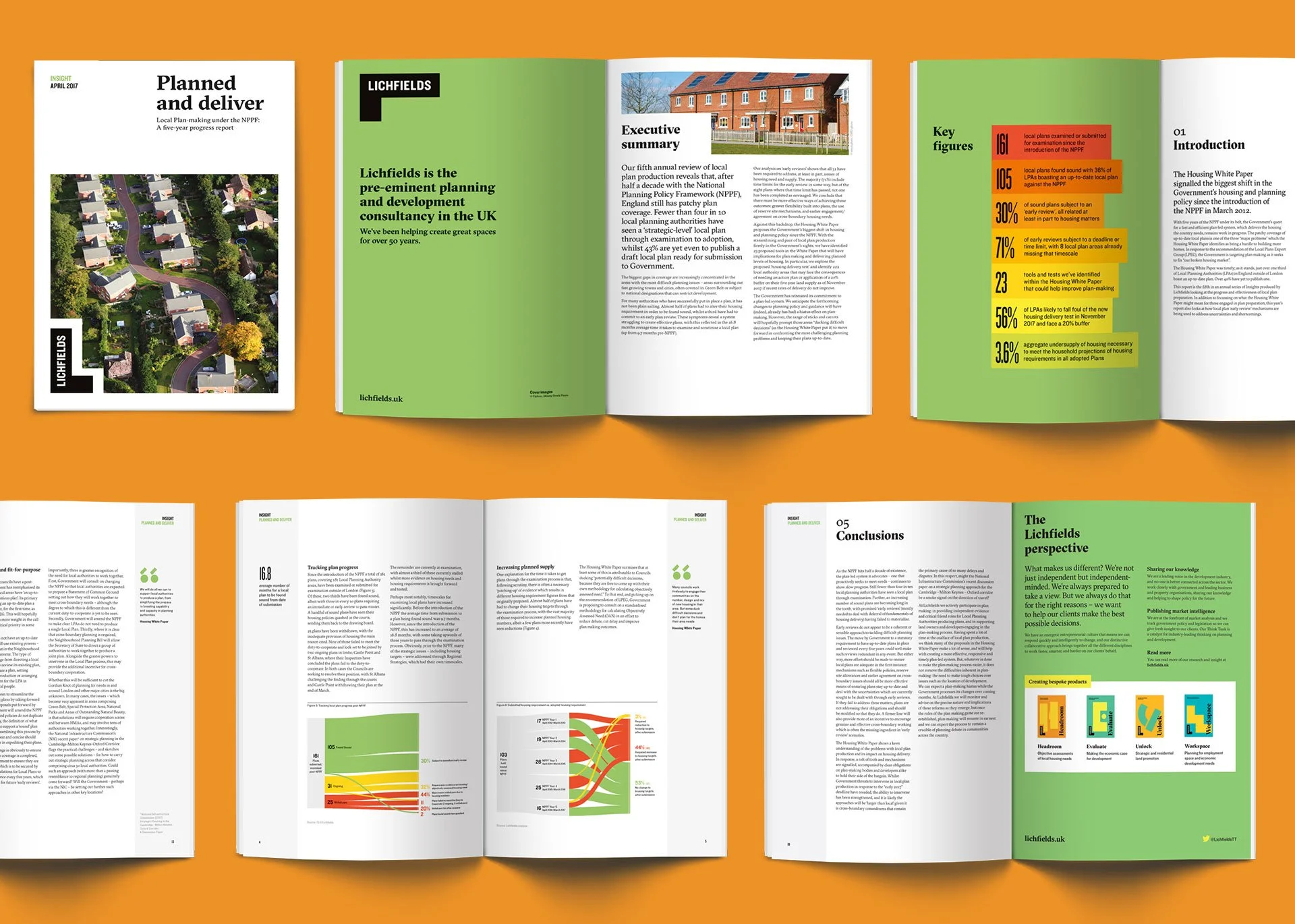 Lichfields, the UK’s leading town planning agency, underwent a major rebrand to modernise its identity. Working alongside the external design agency who created the core brand, I was responsible for implementing the new identity across key marketing materials, stationery and in-house design templates.